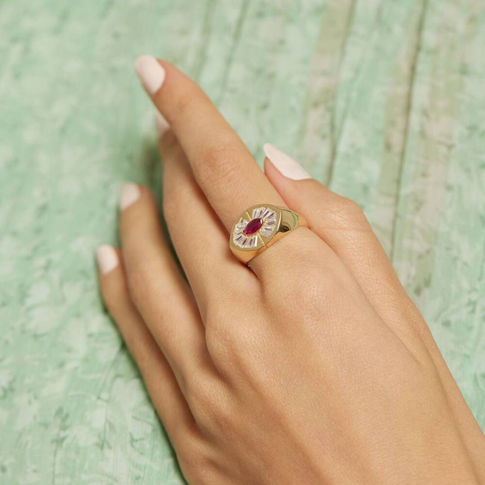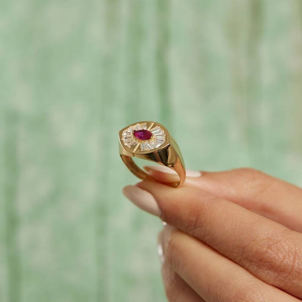 Ortası Pembe Taşlı Şövalye Altın Yüzük - 1