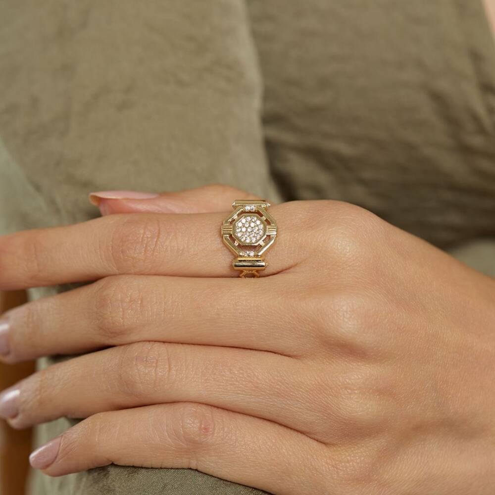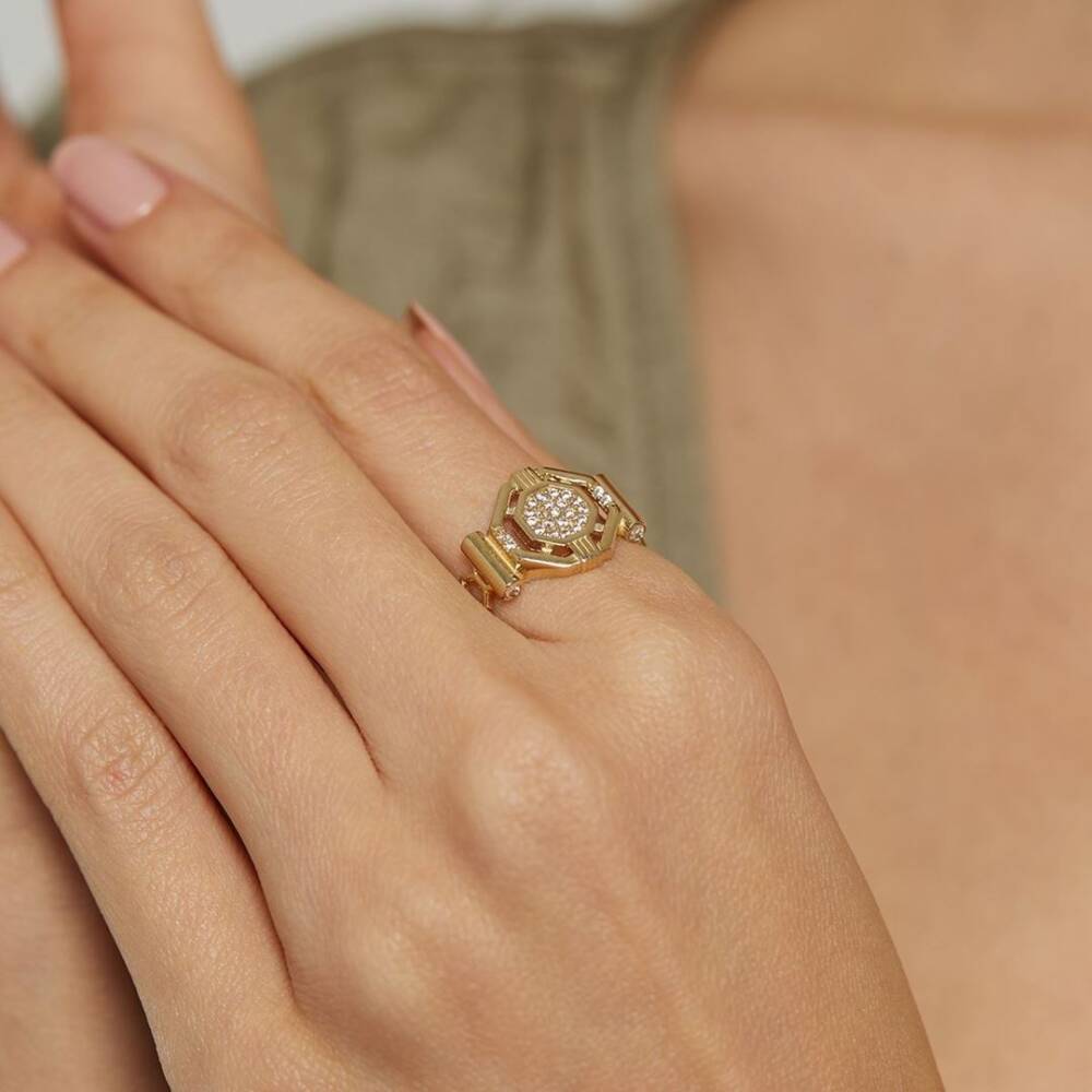 Ortası Taşlı Geometrik Altın Yüzük - 1
