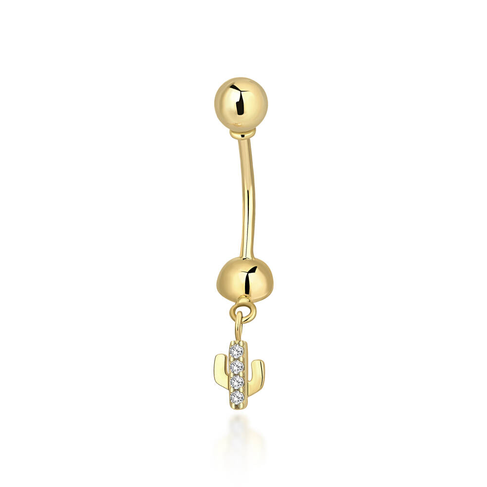 Ortası Taşlı Kaktüs Figürlü Altın Göbek Piercingi - 1