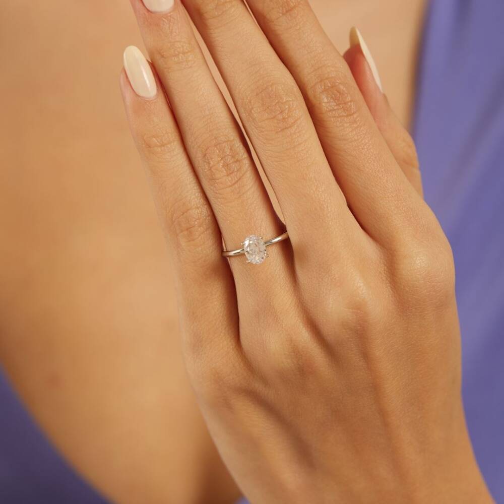 Oval Taşlı Beyaz Altın Yüzük - 1