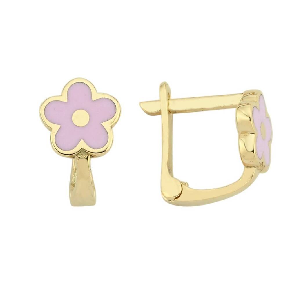 Pembe Mineli Çiçek Altın Çocuk Küpesi - 1