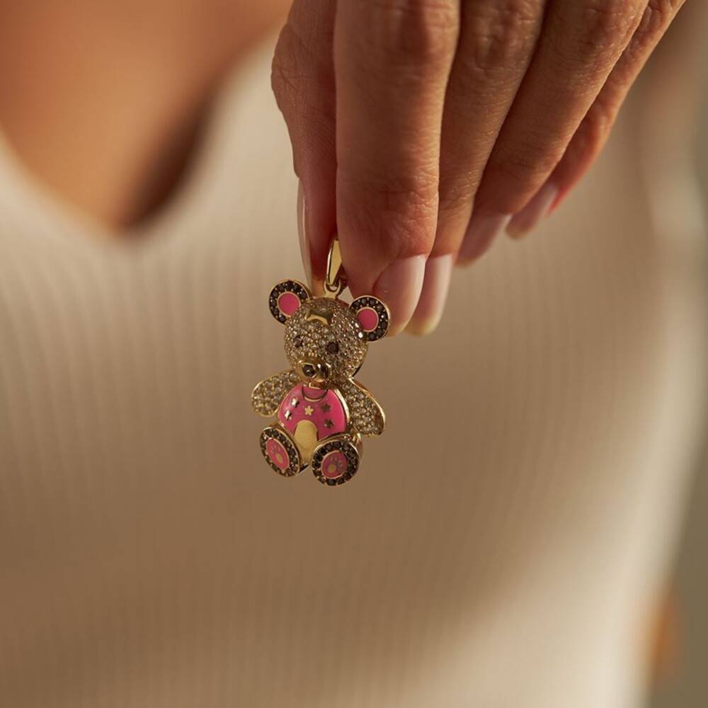 Pembe Mineli Taşlı Ayıcık Altın Kolye Ucu