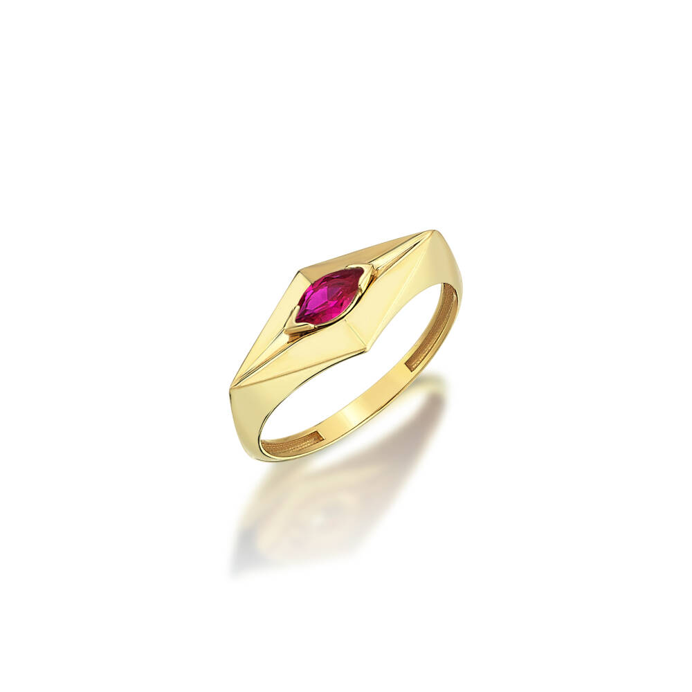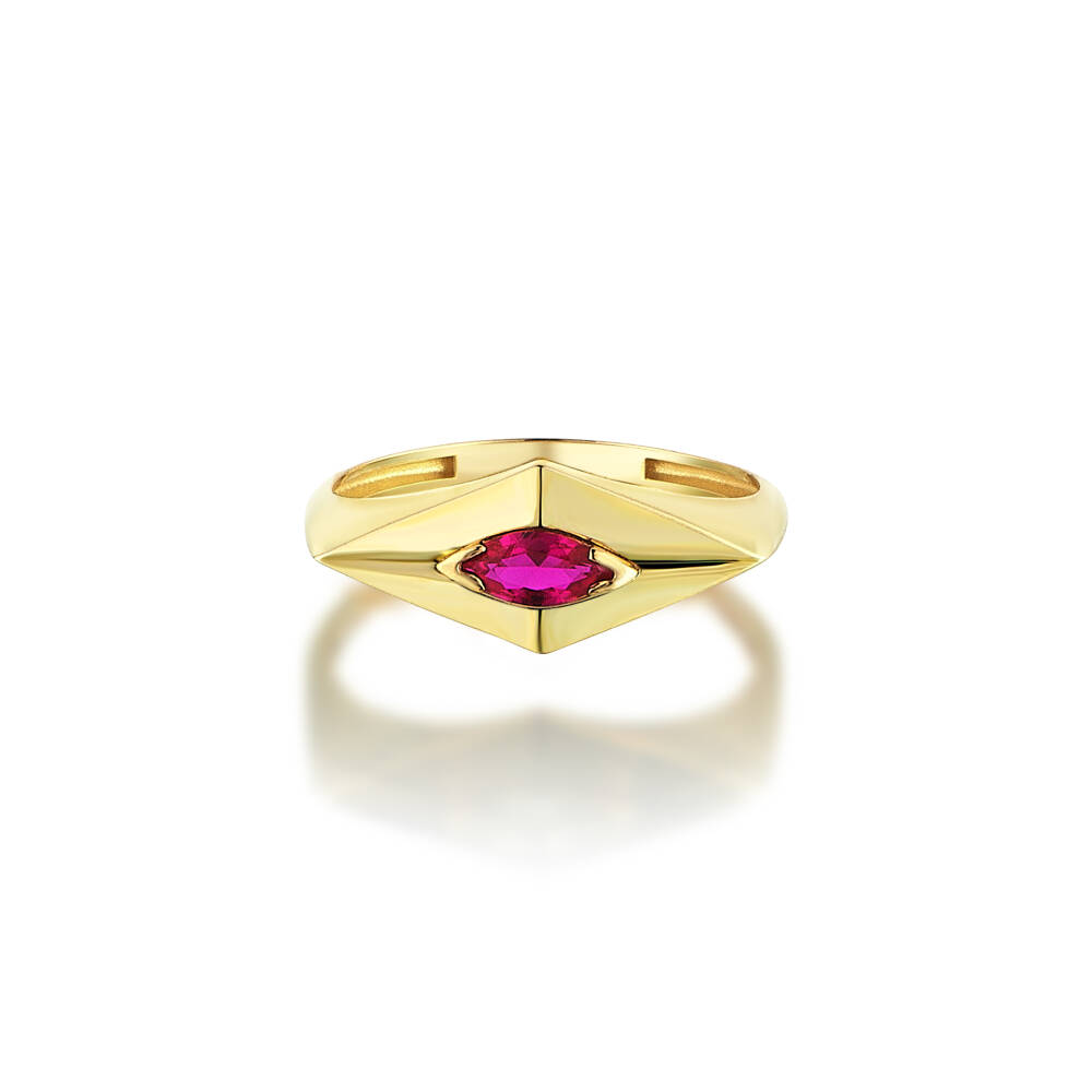 Pembe Taşlı Altın Çizgi Yüzük - 1