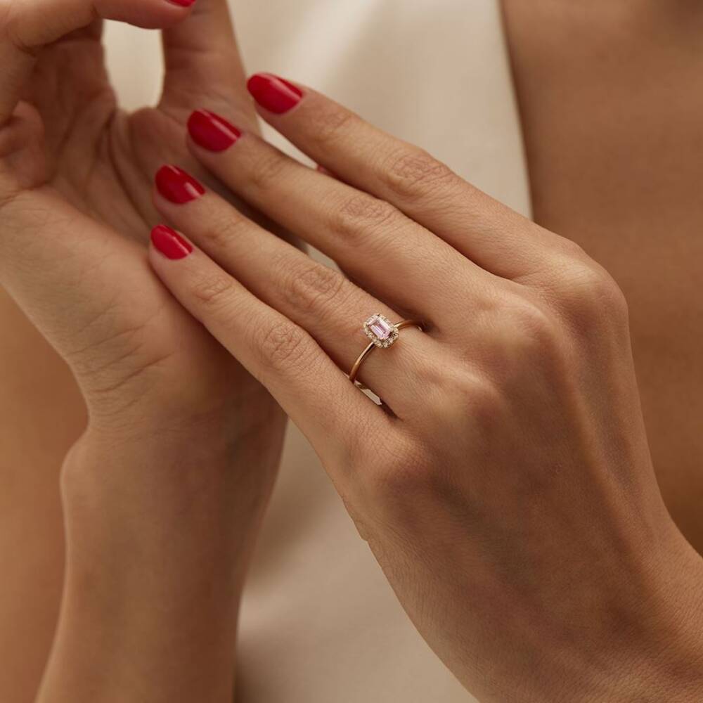 Pembe Taşlı Baget Altın Yüzük - 1