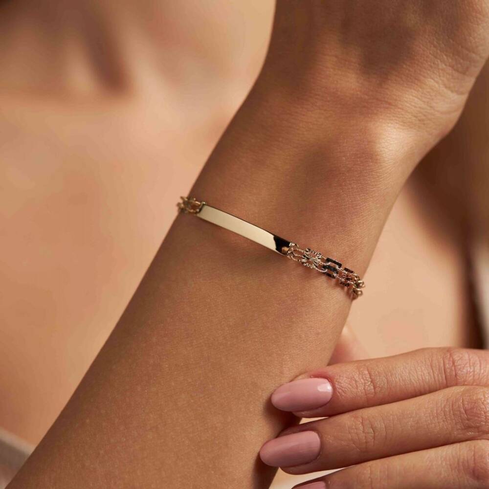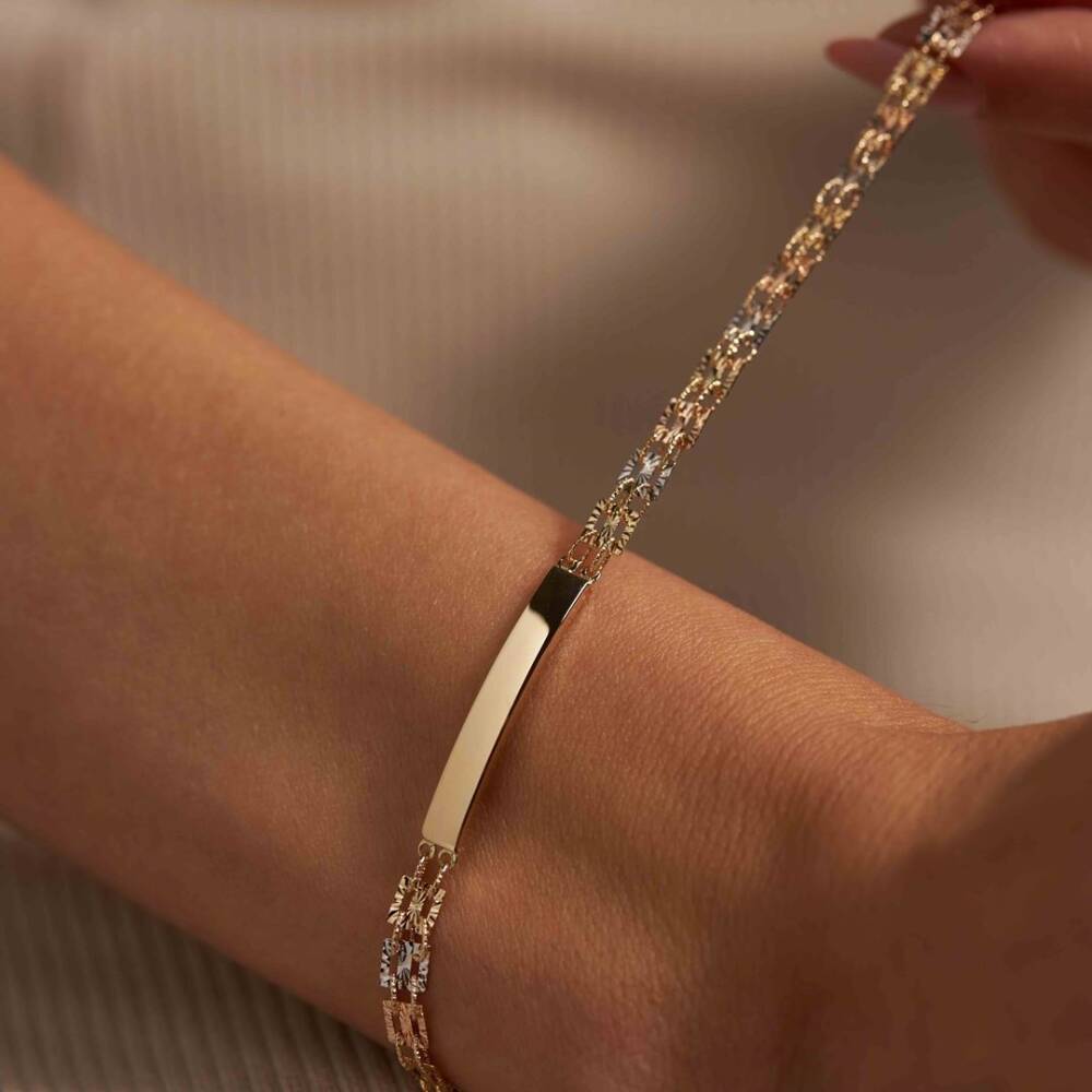Plakalı Üç Renk Kare Zincirli Altın Bileklik - 1