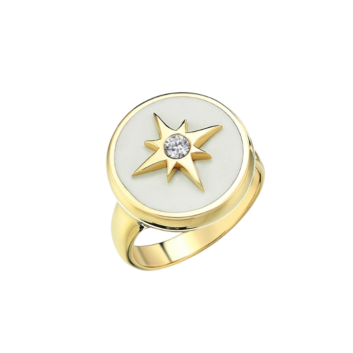 Polaris Beyaz Mineli Altın Cetaş Yüzük