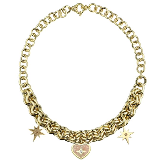 Polaris Pembe Mineli Kalpli Altın Cetaş Kolye