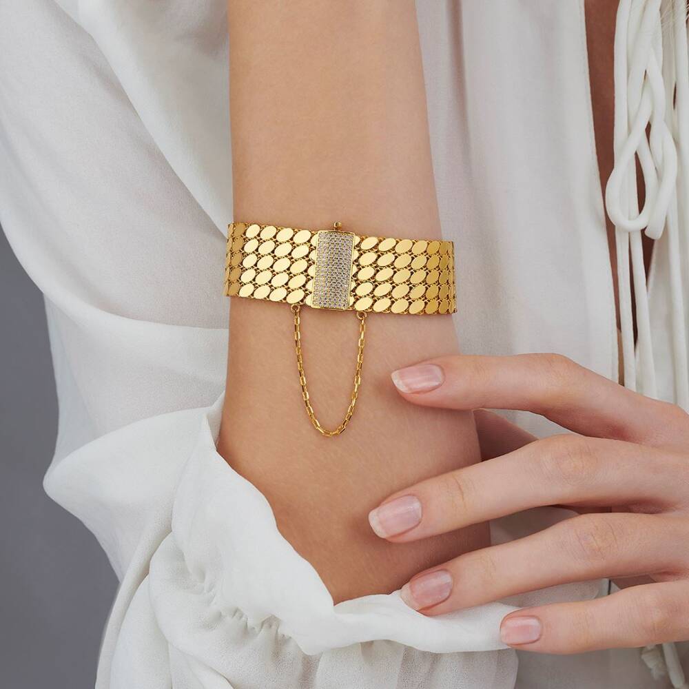 Pullu Taşlı 5 Sıra Altın Bileklik