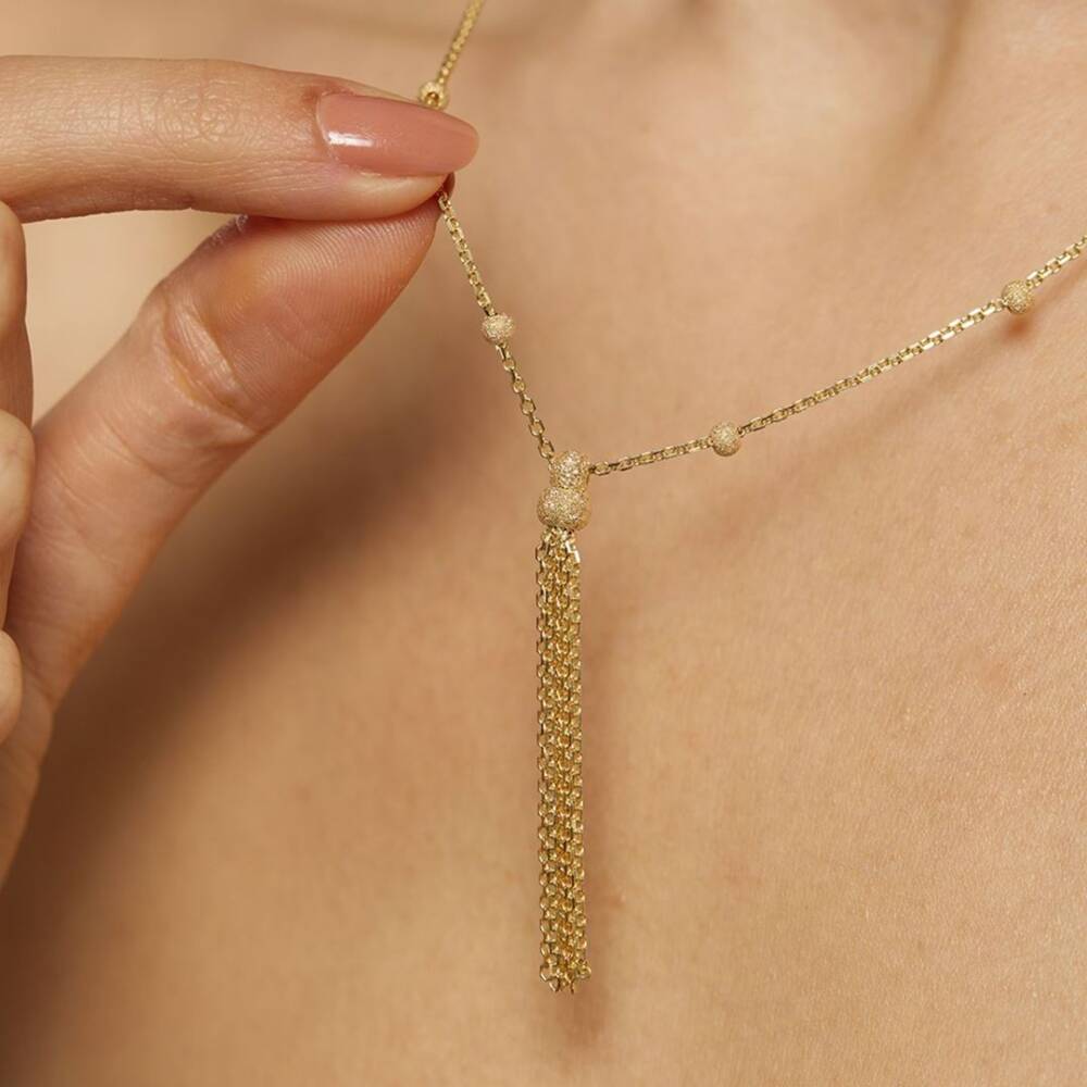 Püsküllü Dorikalı Altın Zincir Kolye - 2