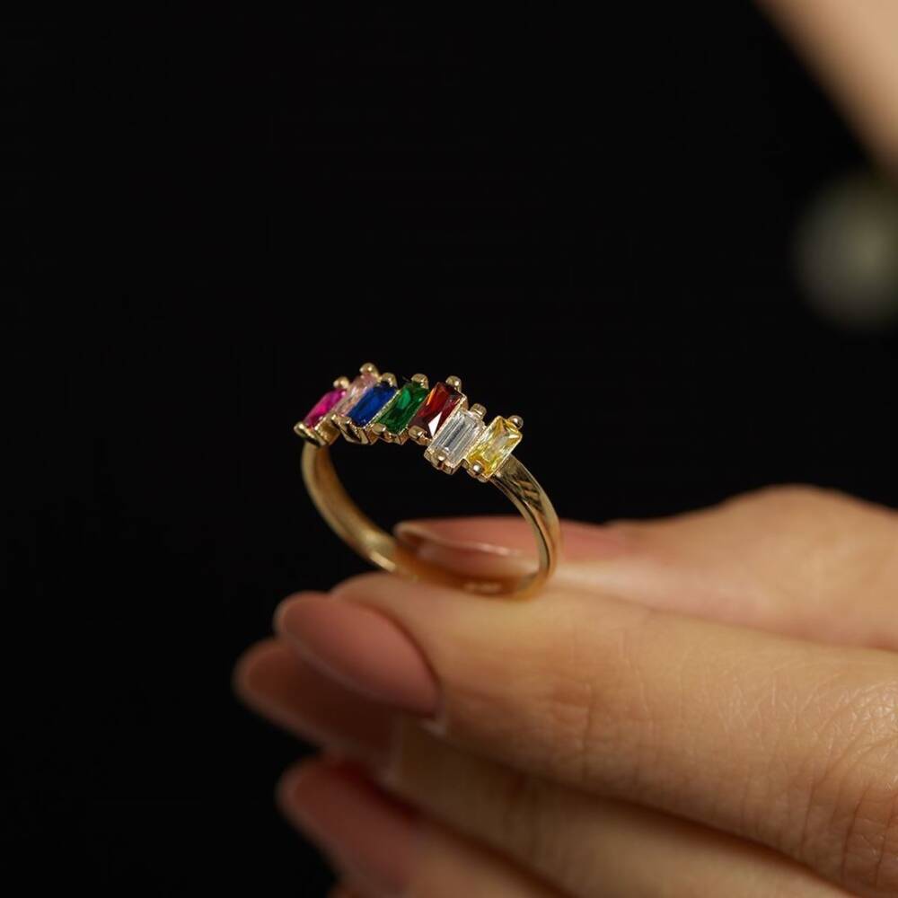 Renkli Baget Taşlı Minimal Altın Yüzük - 1