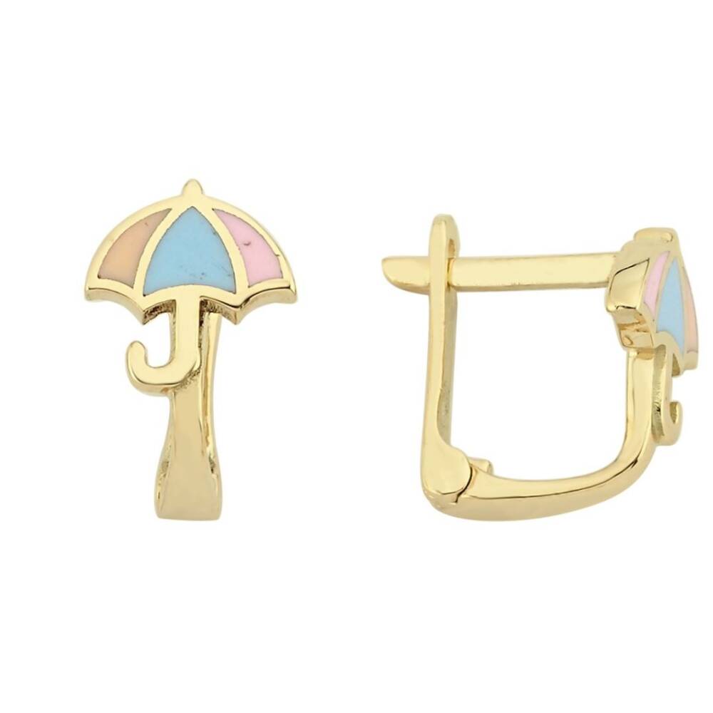 Renkli Mineli Şemsiye Figürlü Altın Çocuk Küpesi - 1