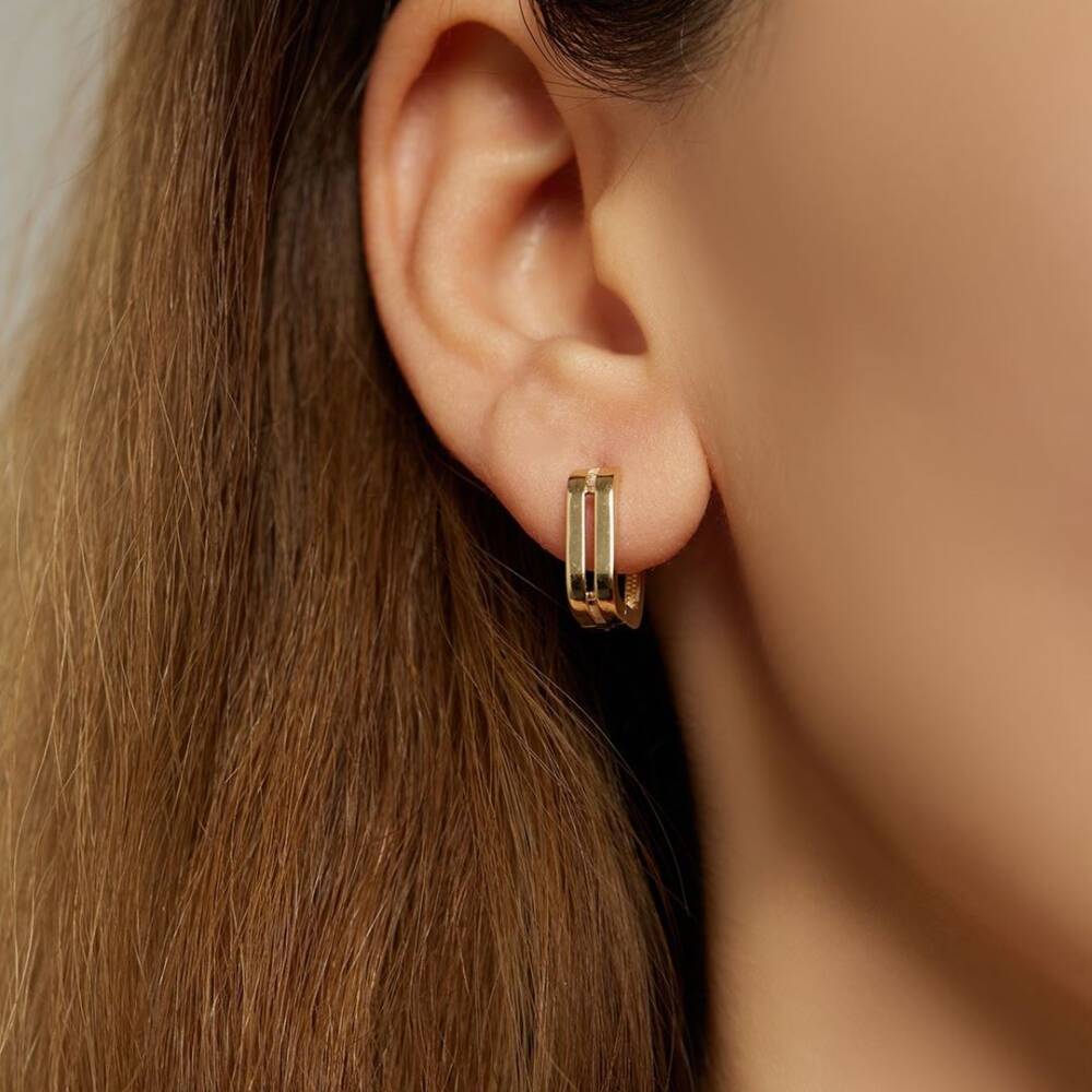 Şerit Formlu Tasarım Altın Küpe - 1