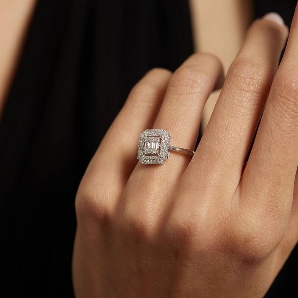 Sıra Taş Dizili Baget Altın Yüzük - 1