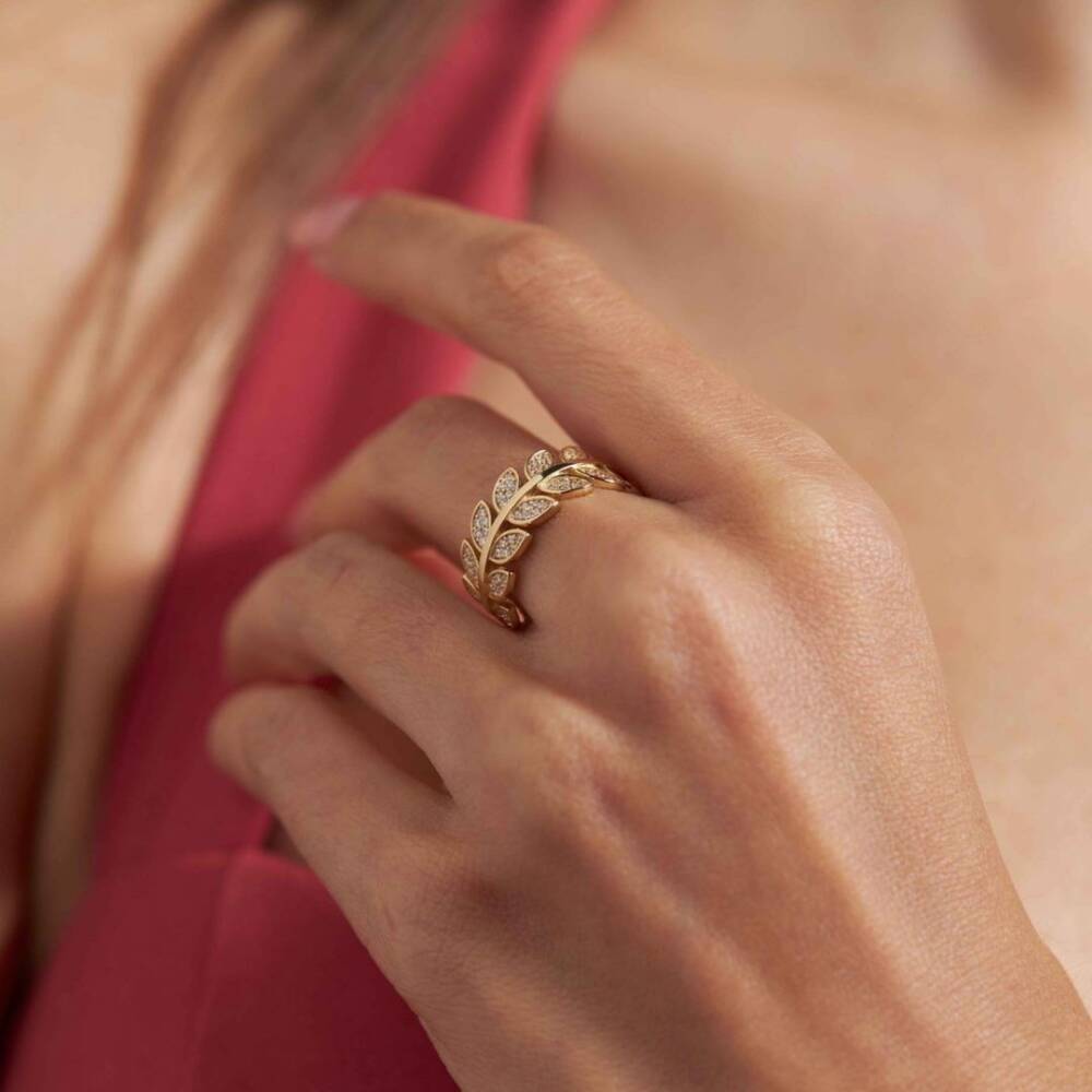 Sıralı Yaprak Tasarım Şık Altın Yüzük - 1