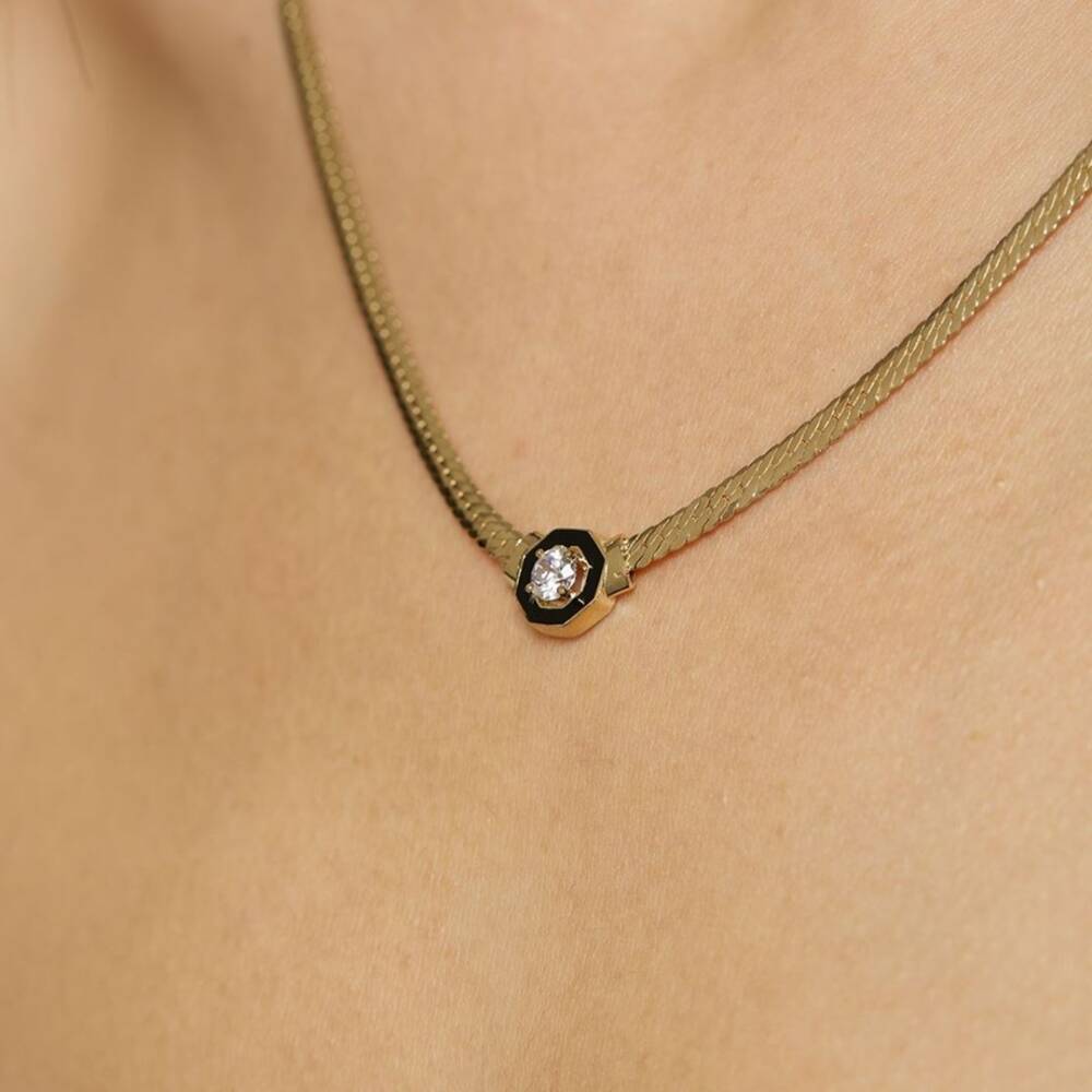 Siyah Mineli Taşlı Altın İtalyan Zincir Kolye