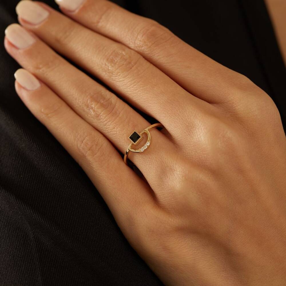 Siyah Mineli Taşlı Altın Yüzük - 1