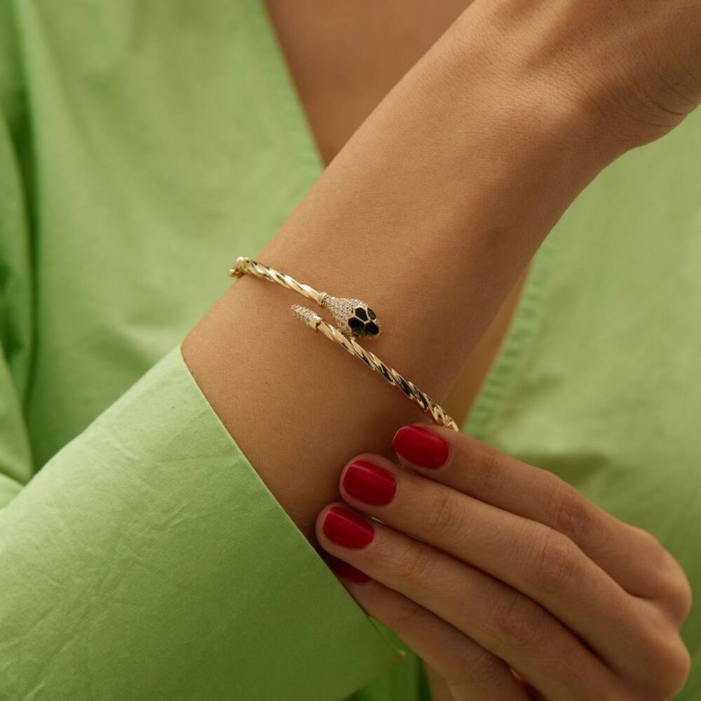 Siyah Mineli Taşlı Yılan Altın Kelepçe Bilezik - 1