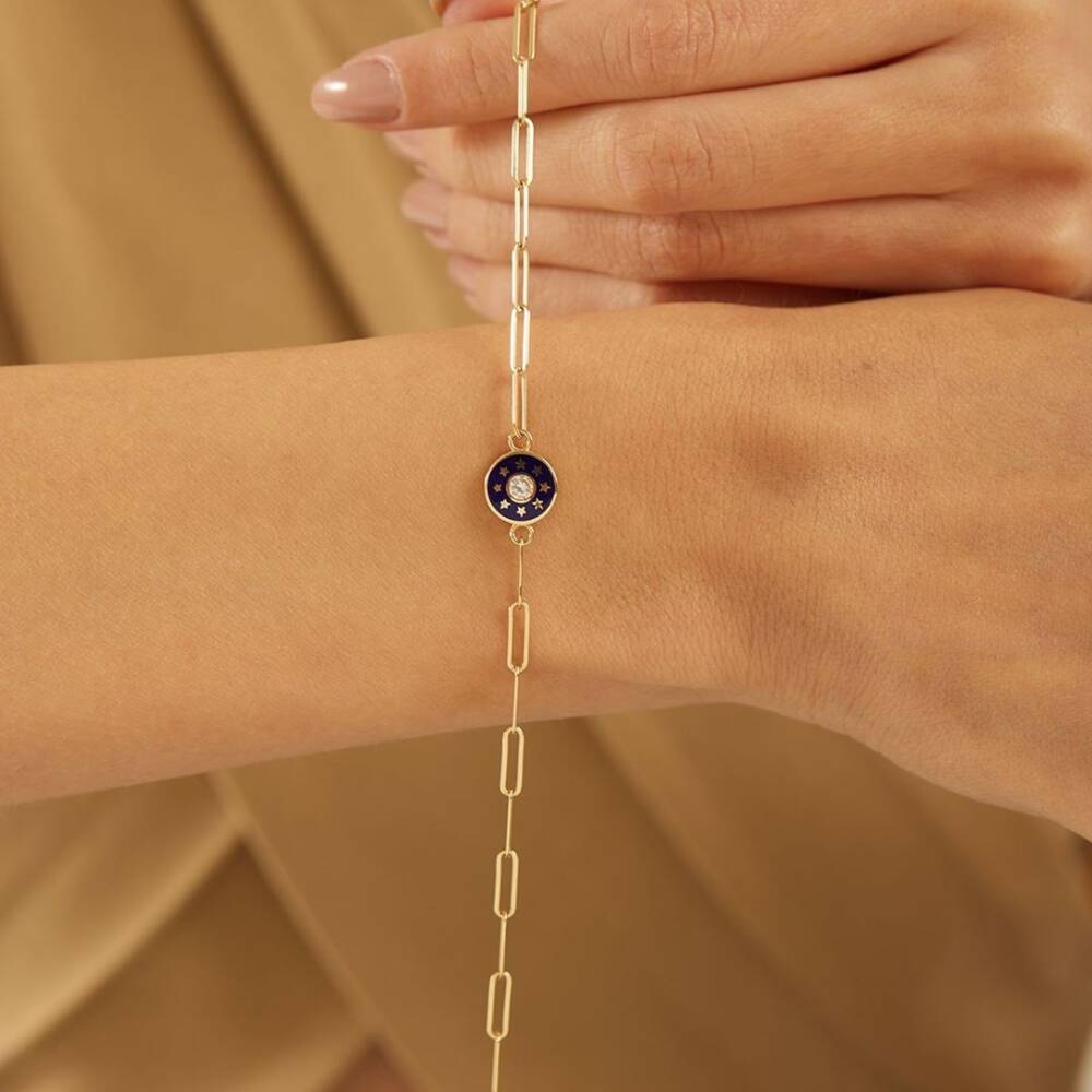 Siyah Mineli Yıldız Detaylı Ataş Zincir Altın Bileklik