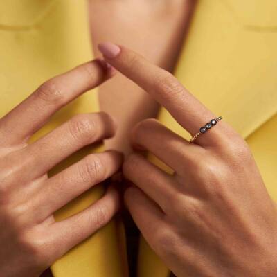 Siyah Taşların Şık Detayı Altın Yüzük - 1