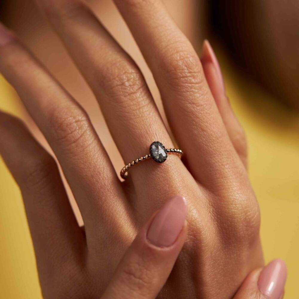 Siyah Taşların Şık Detaylı Dizilişi Altın Yüzük