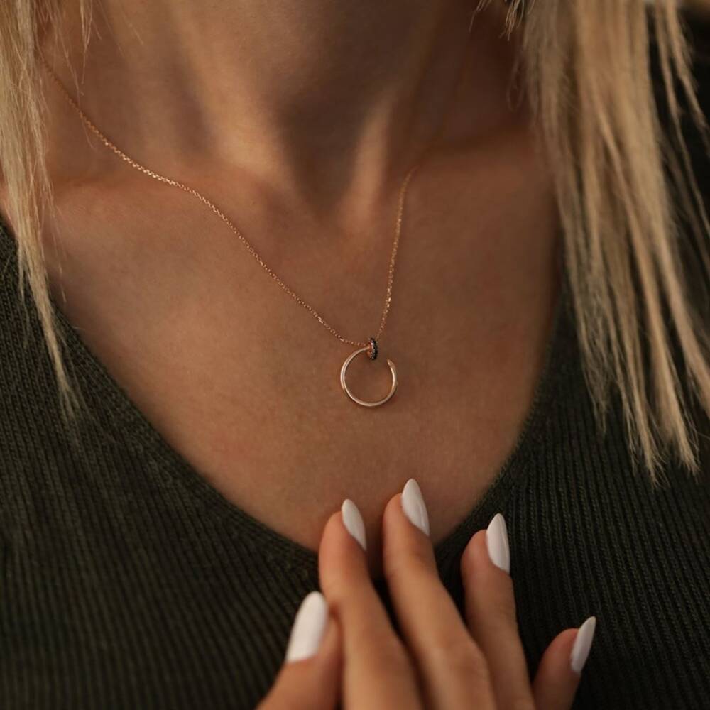 Siyah Taşlı Çivi Altın Kolye - 1