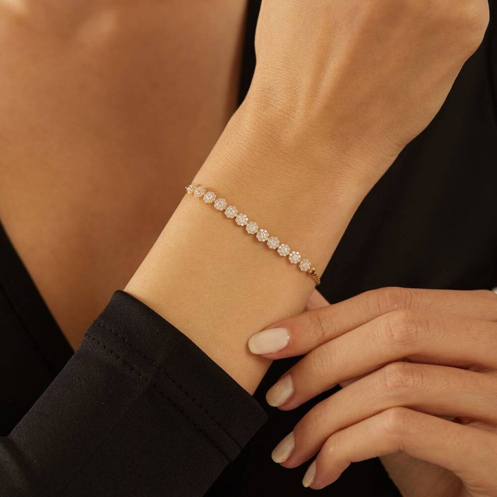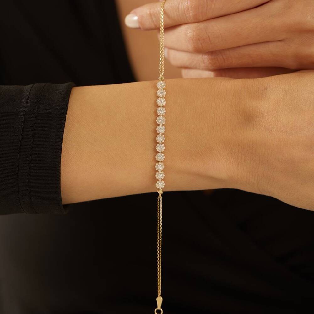 Su Yolu Çiçek Taşlı Altın Bileklik - 1