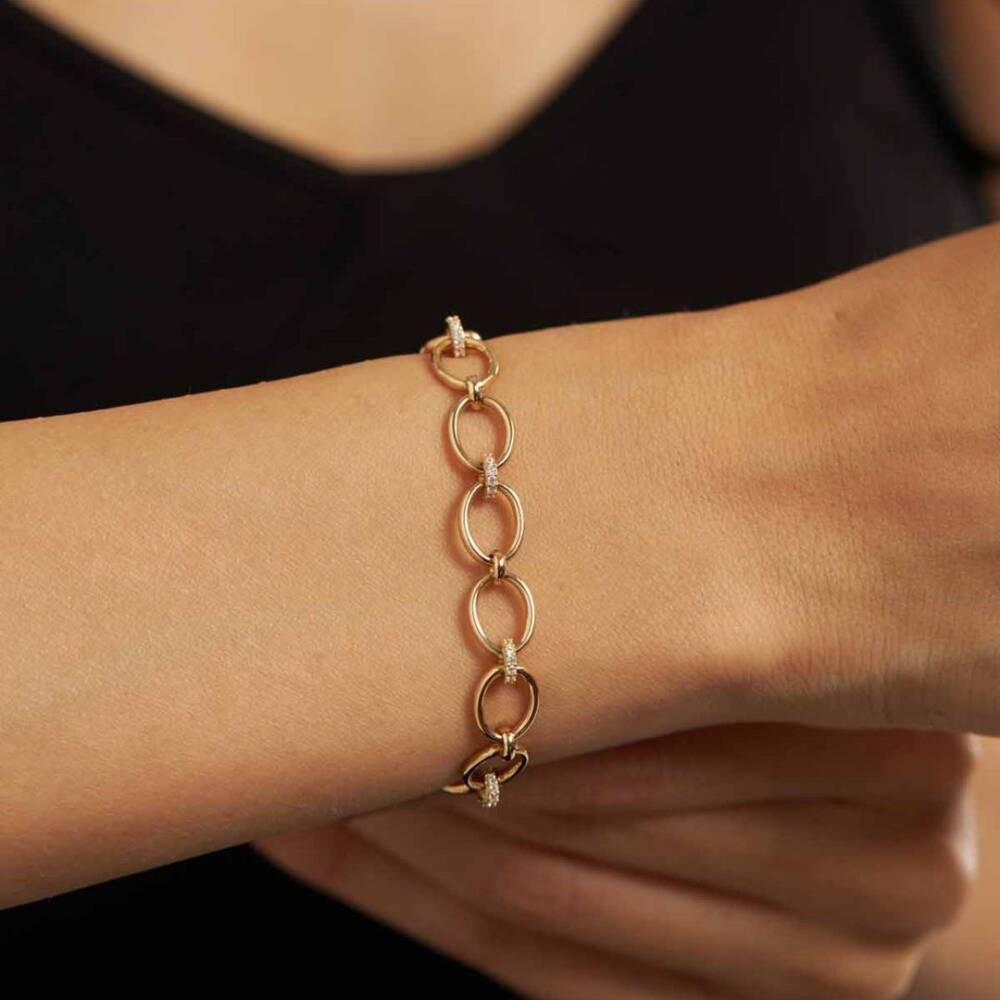 Taş Detaylı Oval Halka Altın Bileklik - 1