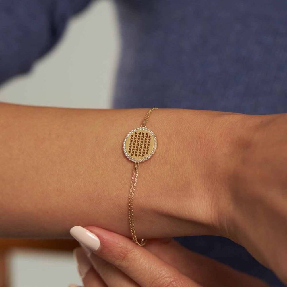 Taş Detaylı Yaşam Çiçeği Altın Bileklik - 1