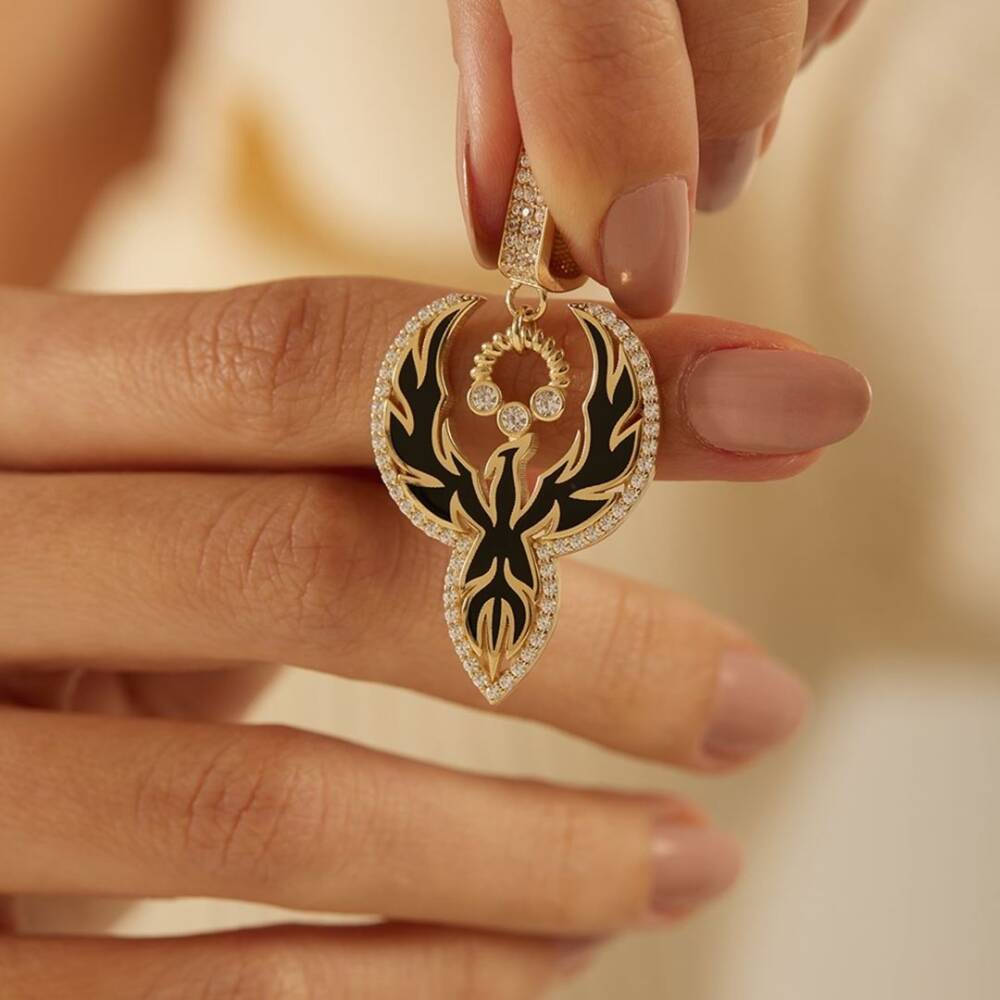 Taşlı Anka Kuşu Altın Kolye Ucu - 1