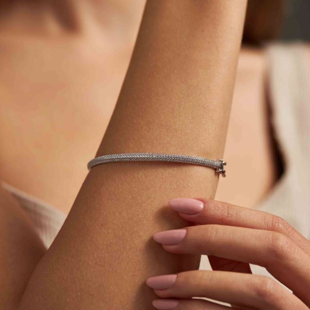 Taşlı Beyaz Altın Kelepçe Bilezik