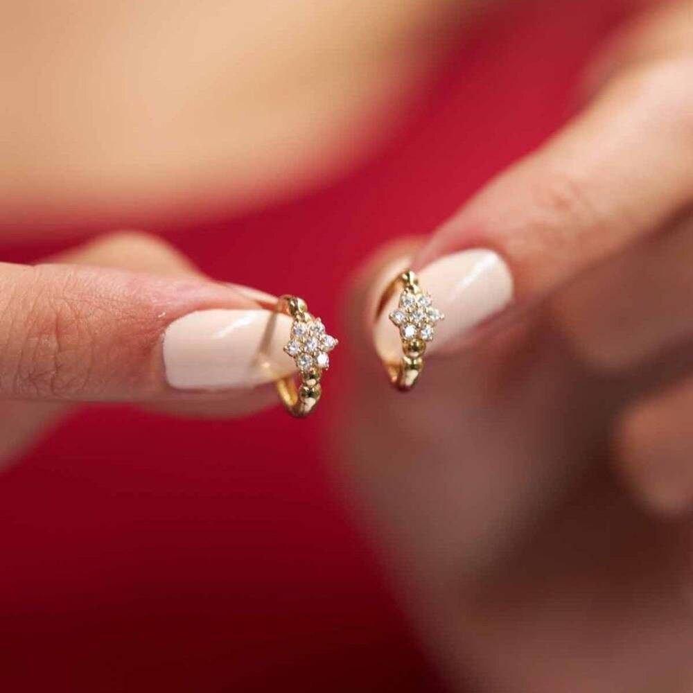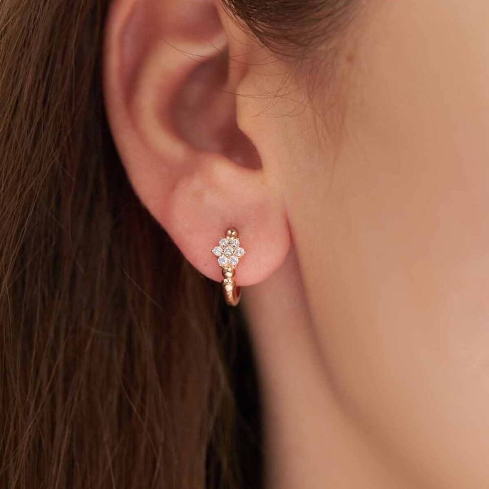 Taşlı Çiçekli Halka Rose Altın Küpe