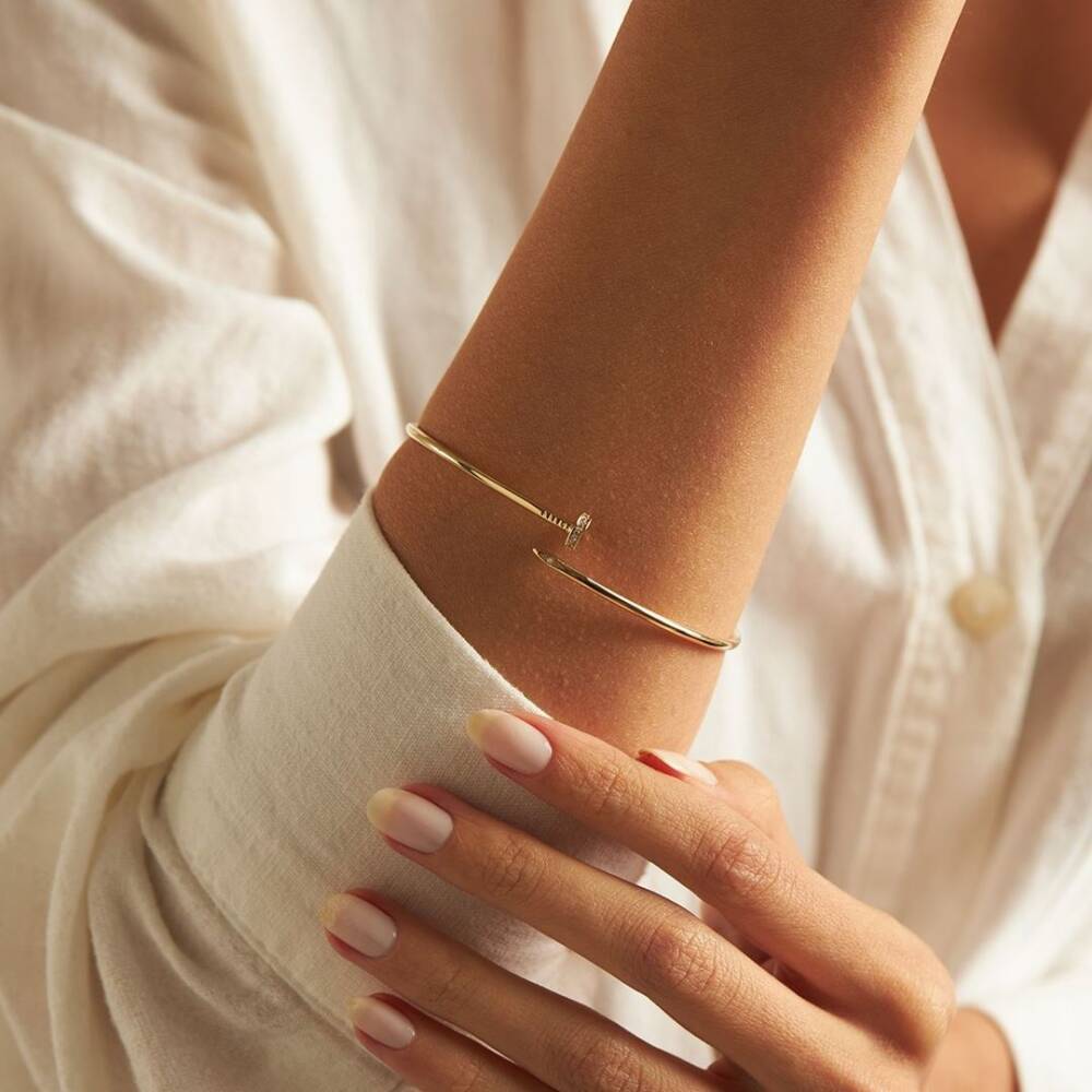 Taşlı Çivi Altın Kelepçe Bilezik - 1