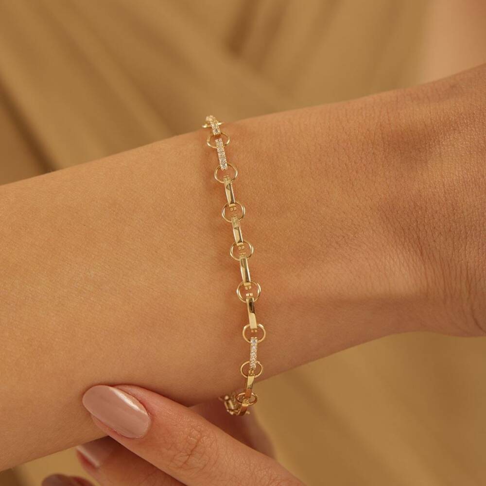 Taşlı Halka Zincirli Altın Bileklik - 2
