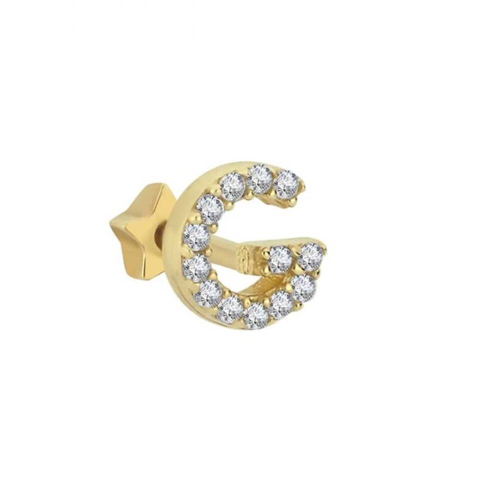 Taşlı Harf Altın Tragus Piercing - 1
