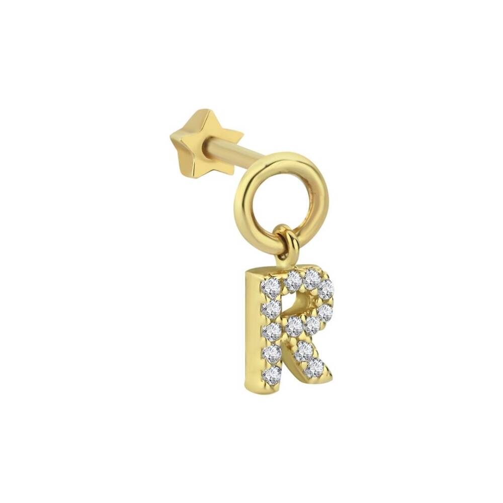 Taşlı Harf Sallantılı Altın Tragus Piercing - 1