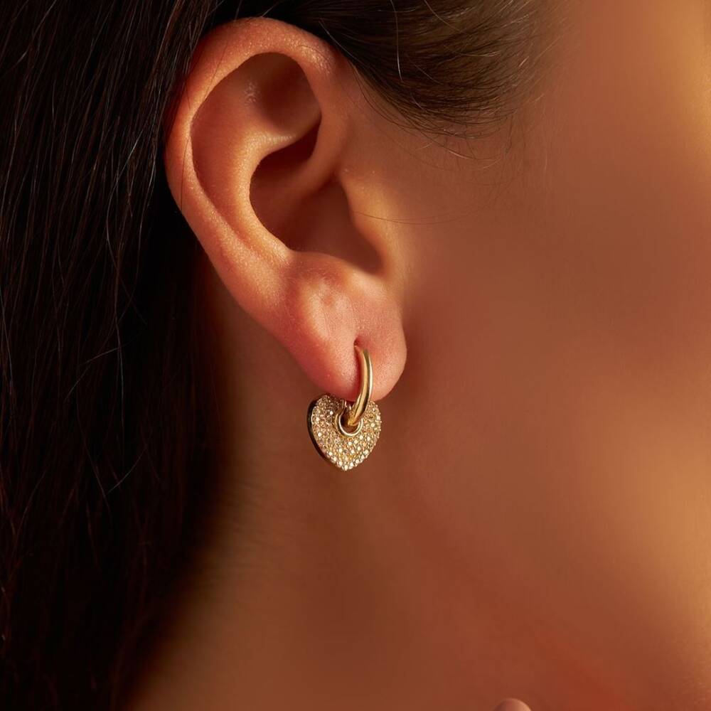 Taşlı Kalp Sallantılı Halka Altın Küpe - 1