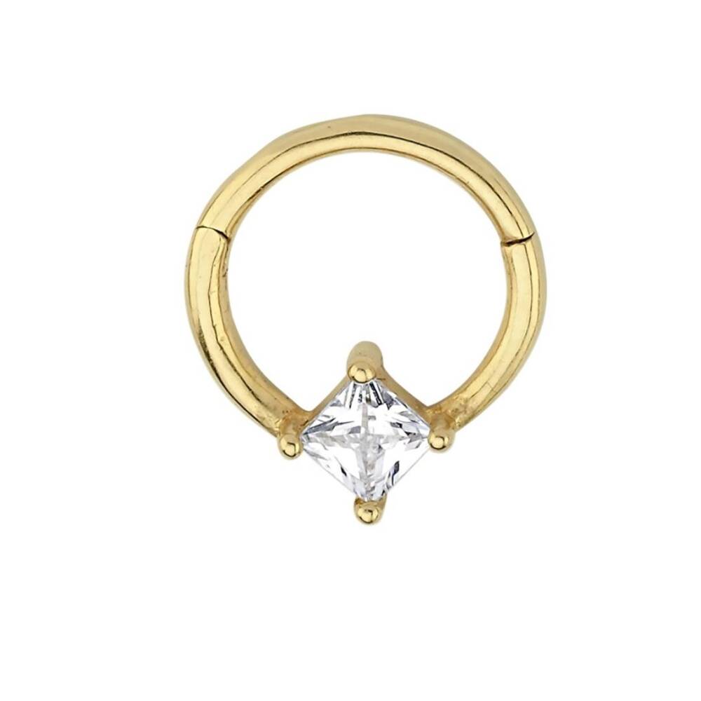 Taşlı Kare Altın Helix Piercing - 1