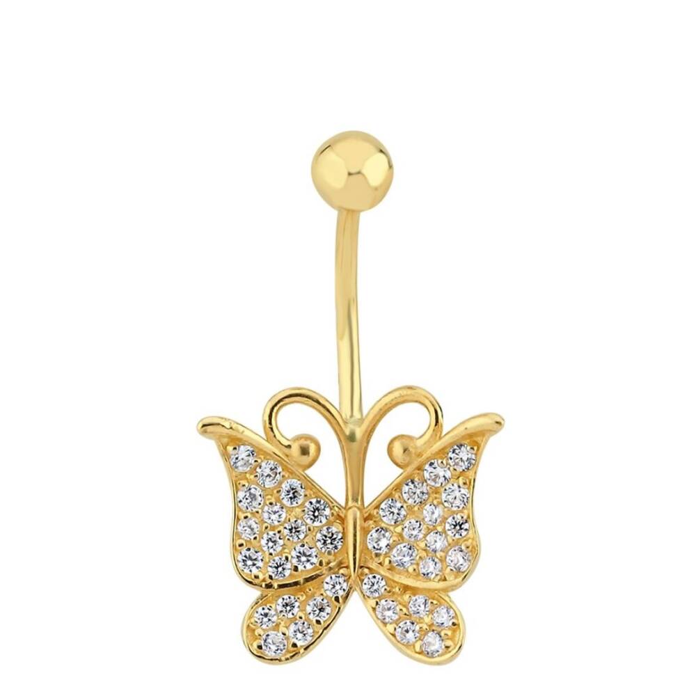 Taşlı Kelebekli Altın Göbek Piercingi - 1