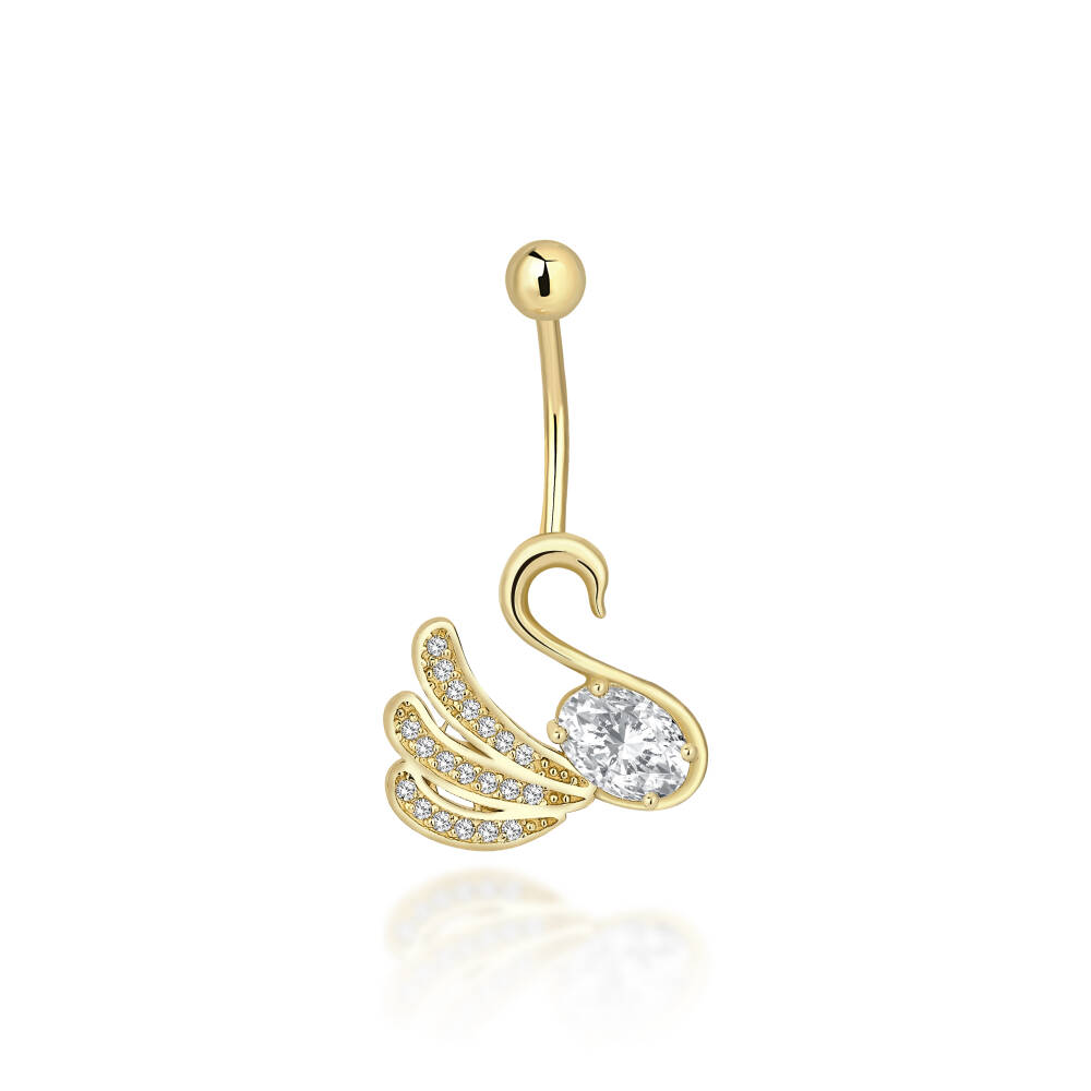 Taşlı Kuğu Altın Göbek Piercingi - 1