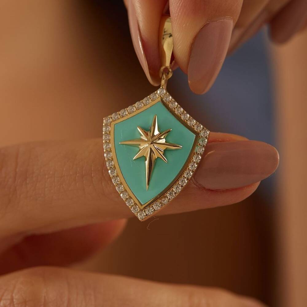 Taşlı Mineli Kutup Yıldızı Altın Kolye Ucu - 1