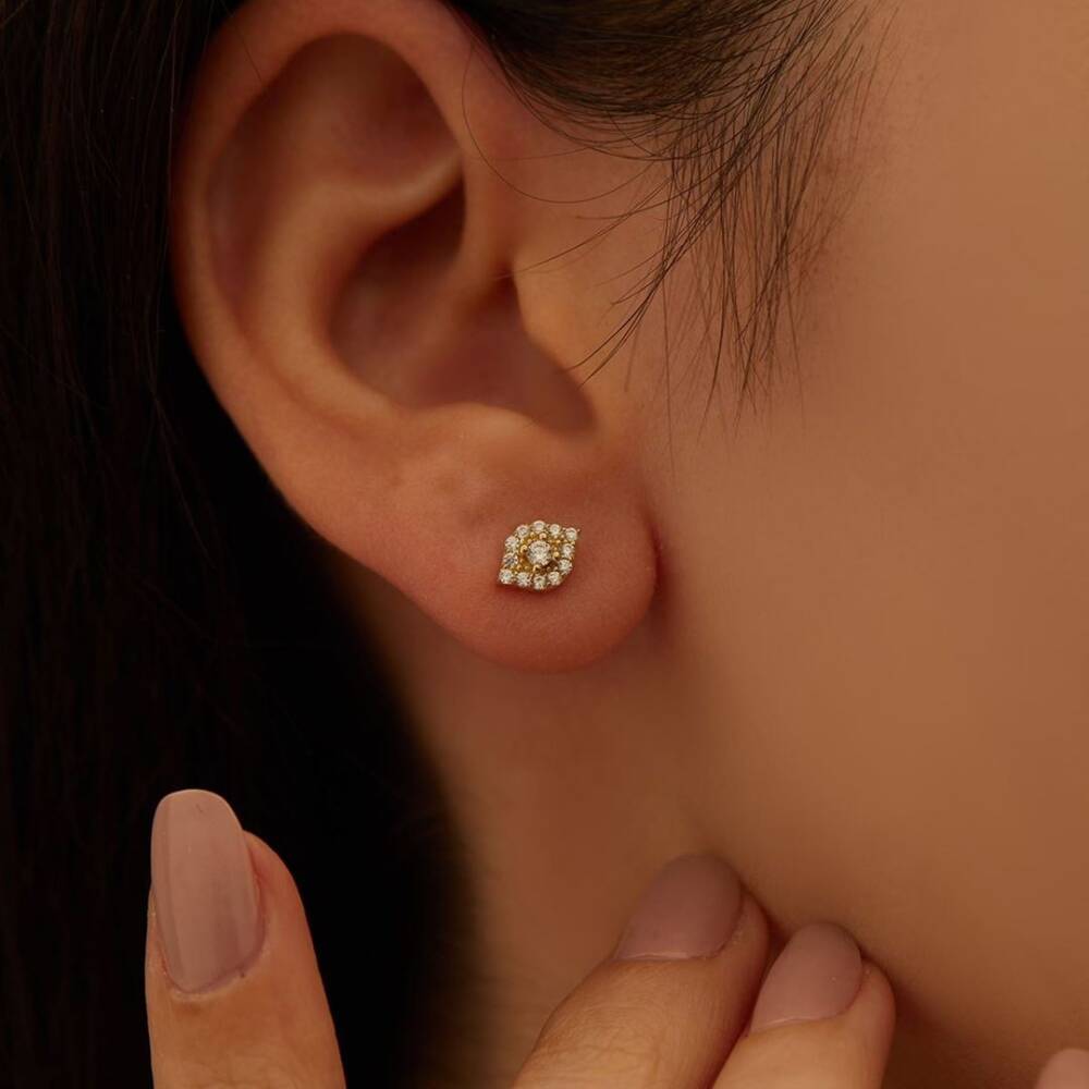 Taşlı Minimal Altın Göz Küpe