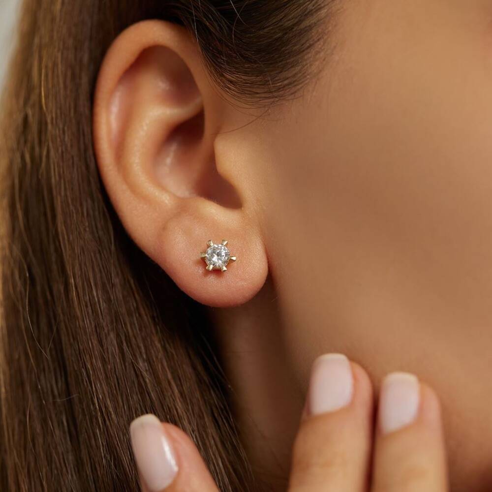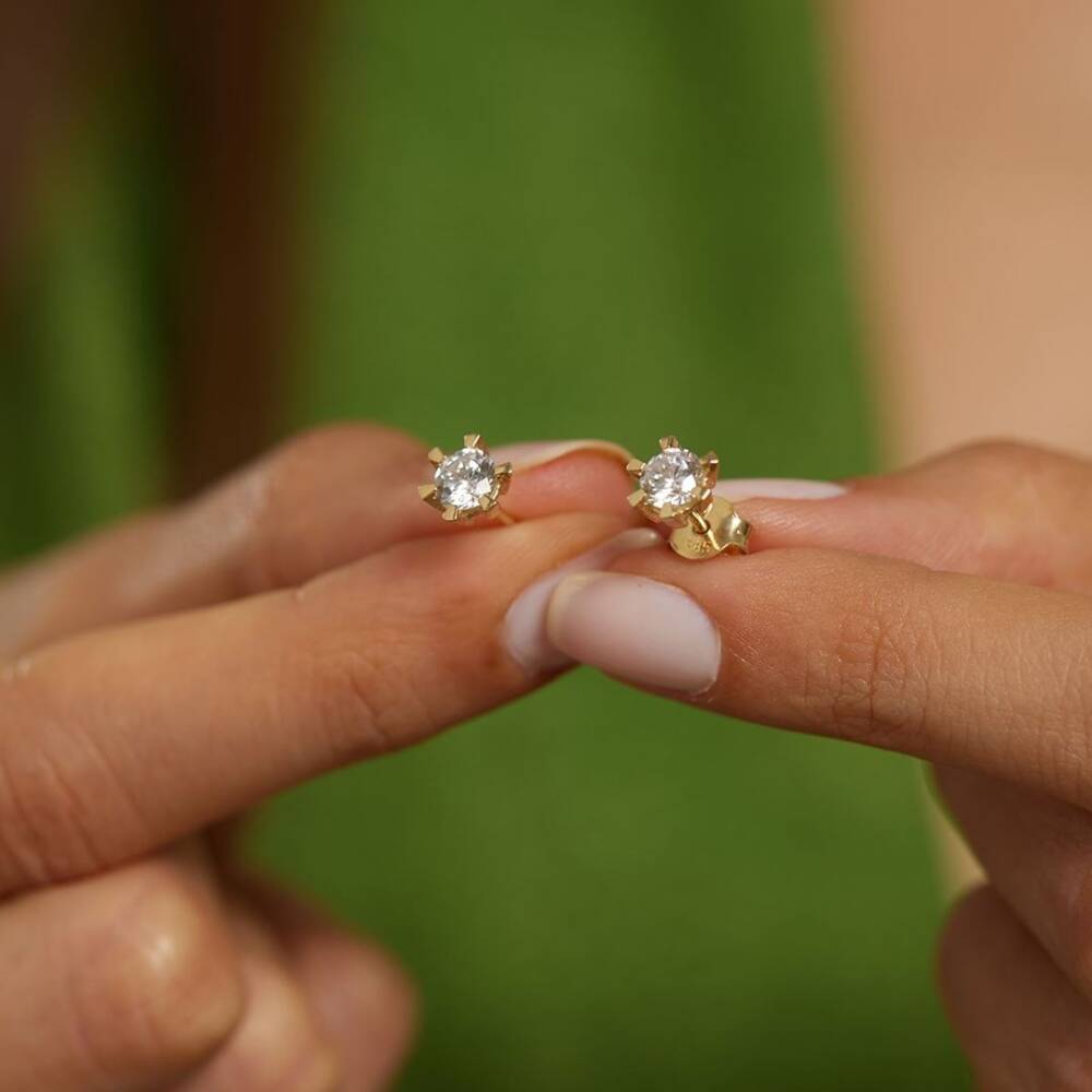 Taşlı Minimal Altın Küpe