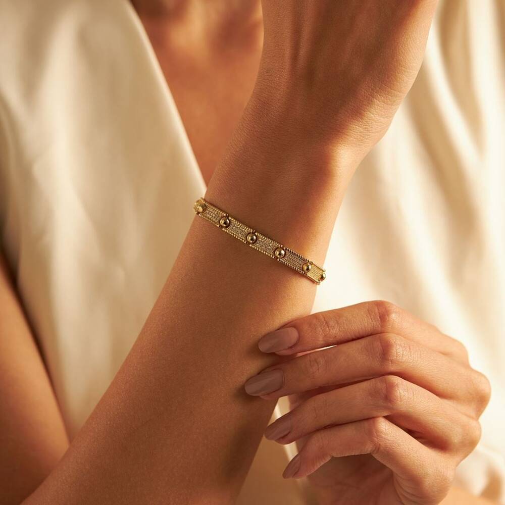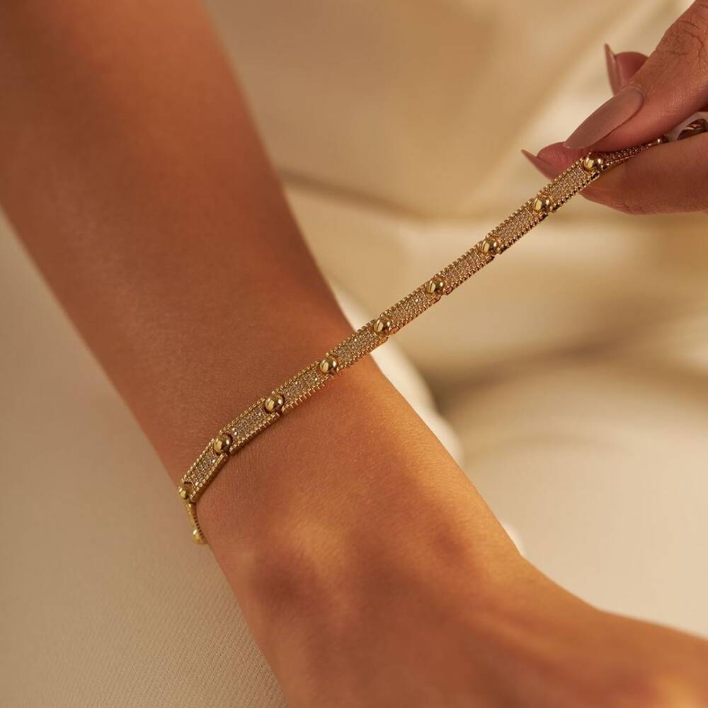 Taşlı Plaka Tasarım Altın Bileklik - 1