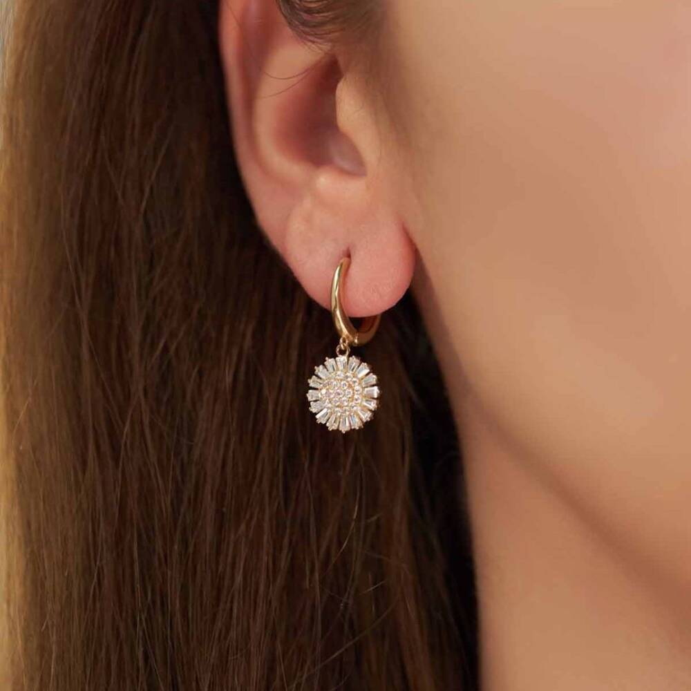 Taşlı Sallantılı Çiçek Altın Küpe - 1