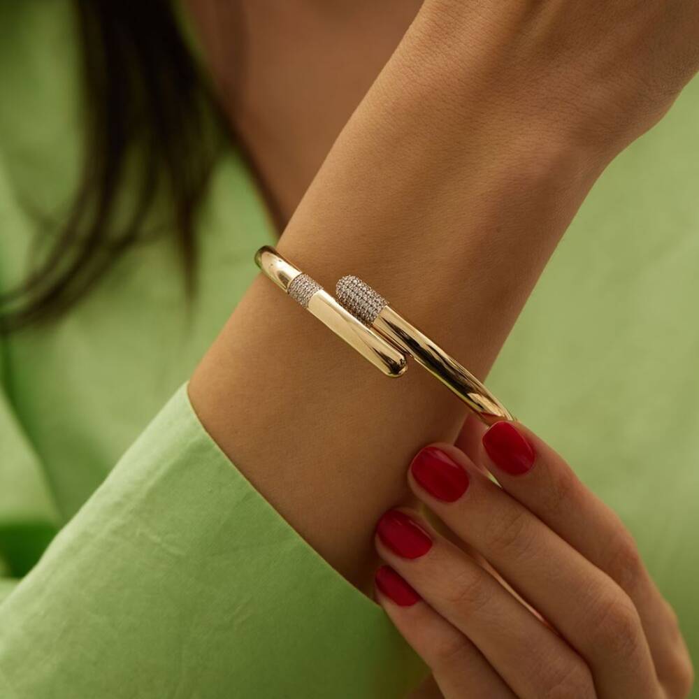 Taşlı Sarmal Altın Kelepçe Bilezik - 1