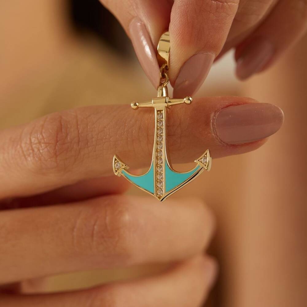 Taşlı Turkuaz Mineli Çapa Altın Kolye Ucu - 1