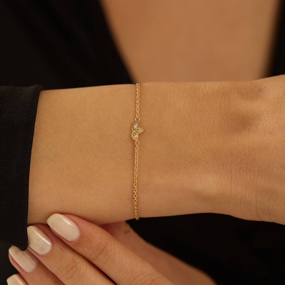Taşlı Yaprak Minimal Altın Bileklik - 1