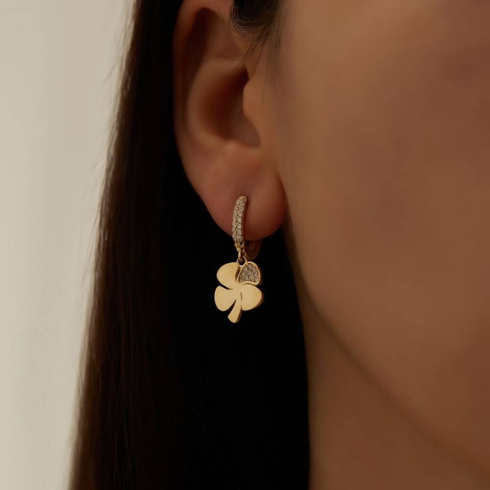Taşlı Yonca Sallantılı Altın Küpe - 2