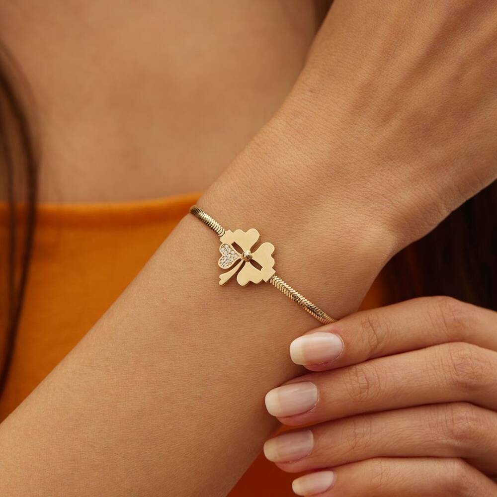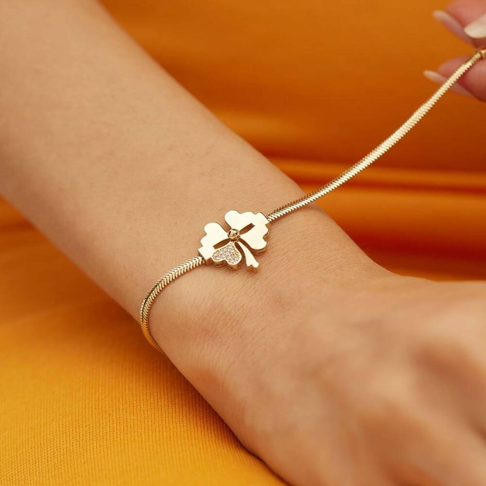 Taşlı Yoncalı Balıksırtı Zincir Altın Bileklik - 2