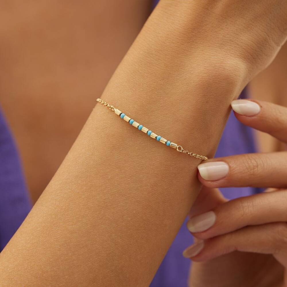 Turkuaz Boncuklu Küplü Altın Bileklik - 1